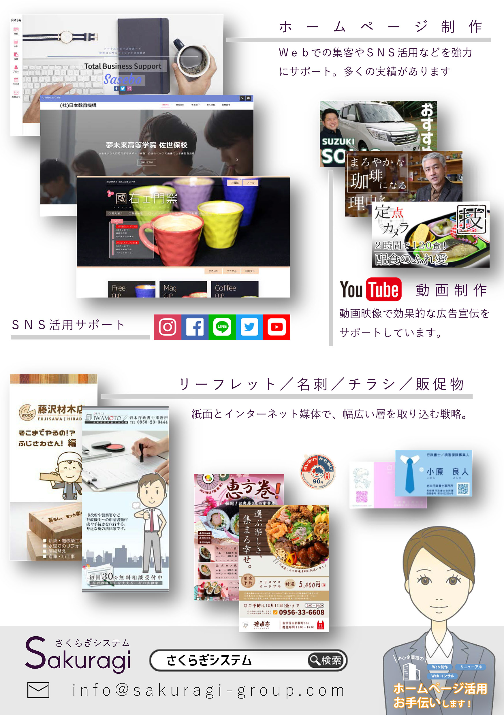 クリエイト部門では、ウェブサイトやウェブシステムを提案します。お客さまと状況を共有しながら今の時代にあった「集客の仕組み」を構築していきます。